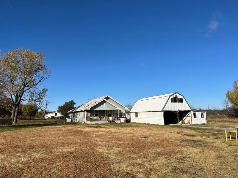 Opportunities like this one are becoming very rare in Denton County! Nearly 8 acres nestled up to greenbelt with farmhouse ready to transform into that country dream home. This frame 2-bedroom 2 full bath home could go in many directions, featuring large rooms and covered porch. Two car carport features 560 sq ft one bedroom apartment upstairs, office and workshop below. Two Additional carports have room for all the toys and equipment. In back acreage sits 35 x 15 tall metal shop with electricity and water. Storage shed and septic perfect for a RV. All this overlooking tall trees and open hay pasture located just north of Denton near Lake Ray Roberts. Property partially in flood Plain and has Corp Flowage Easement. Located in Denton ETJ and Lake Ray Roberts Planning Commission Jurisdiction. Owner recently inherited property and has not been in structures in many years. No disclosure or survey available. Main house is vacant, individual living on back of property in RV next to shop. Buyer must verify all sizes, boundaries, taxes, zoning, easements, flood plain and schools.