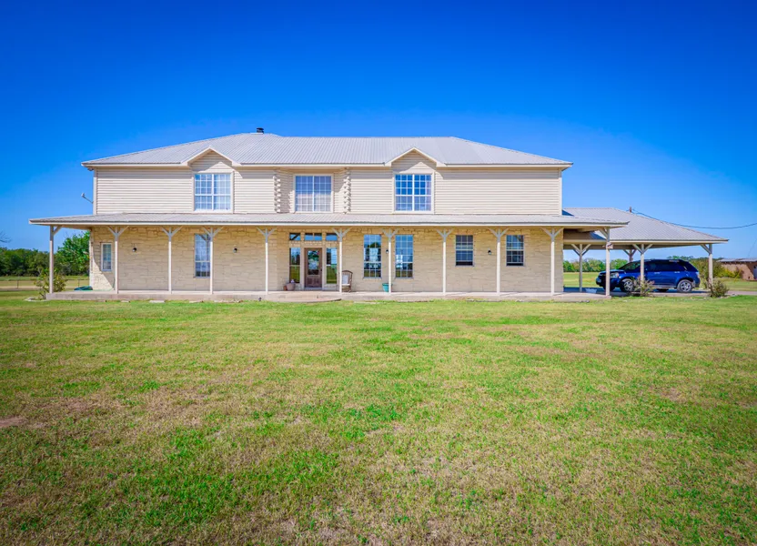 Spacious 2 Story, 5 Bedroom, 4.5 Bath, log/stone country home that offers the family room to grow and roam. This home features an owner's ensuite with a cozy fireplace, huge walk-in closet, and a luxurious master bath with jetted tub. Secondary bedrooms are on the upper level and each feature private baths. There is also a second living area on the upper level. The main level features a wall of windows bringing country atmosphere inside. A floor-to-ceiling limestone fireplace is the focal point of the living area and opens to the breakfast area and country style kitchen with tons of storage.