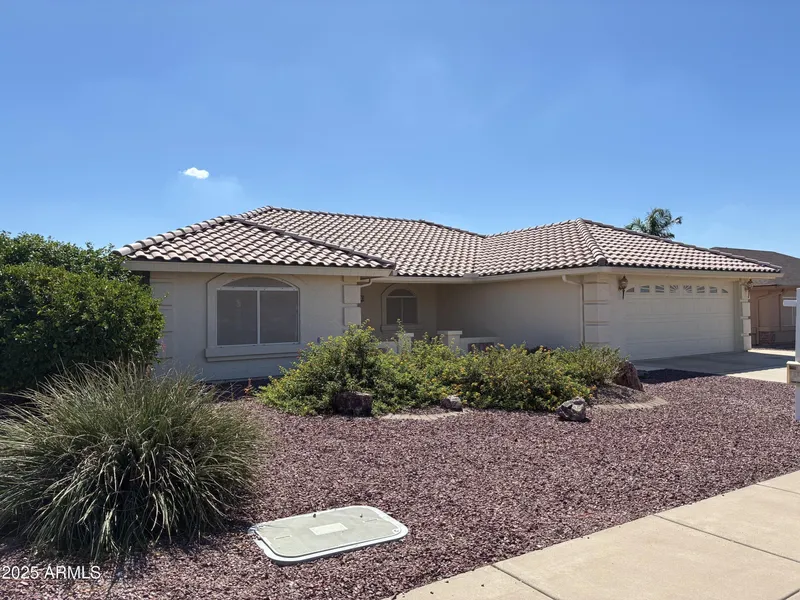 Popular Split bedroom & den home with 2 baths. Featuring a 2-car extended garage, new landscaping in front & 5 mature fruit trees. Large vaulted ceiling & spacious great room makes it perfect for entertaining. Kitchen is ready for all those meals and you can update to meet your desire. Large Master BR has walk in closet, dressing cabinet, 2 sinks with extra lighting. Large back patio with hedge around the lot permits privacy. HVAC, HWH, Water Softener & Reverse Osmosis system all replaced in last 5 years, makes it ready for you to move in to this home! Low HOA of $915 a year gives you 2 exercise facilities, 2 pools, wood shop, softball field, pickle ball and tennis courts and much more!
