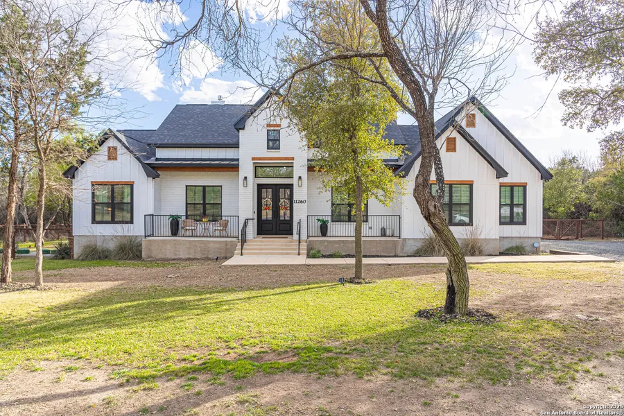 Welcome to your dream home! This stunning one-story modern farmhouse is nestled on nearly an acre of lush land, offering the perfect blend of tranquility and contemporary living. Step inside to discover an inviting interior showcasing a cozy gas fireplace, ideal for those chilly evenings. Featuring an open-concept layout, where the heart of the home is the stunning kitchen, equipped with a high-end Zline stainless steel range and appliances. The elegant white quartz countertops provide both beauty and functionality. Recessed lighting throughout the home enhances the modern feel while ensuring the space remains bright and welcoming. The spacious living area is flooded with natural light, accentuated by large windows and high ceilings. The open-concept design seamlessly connects the living and dining areas, making it perfect for entertaining or family gatherings. The master suite is a true retreat, complete with a luxurious en-suite bathroom and ample closet space. Additional bedrooms provide plenty of room for family or guests, while a dedicated laundry room adds convenience. Step outside to your expansive .80 of an acre yard, ideal for gardening, outdoor activities, or simply enjoying the serene surroundings. Located in a peaceful neighborhood with the freedom of no HOA and No next-door neighbors! This means you have complete control over your property while giving you lots of privacy. Just a short drive of 10 min to La Cantera Shops and 5 min to the nearest Walmart and local amenities, this modern farmhouse is perfect for those seeking a balance between rural charm and modern convenience. Ample storage options abound, including a dedicated storage shed outside, ideal for keeping your tools and equipment organized. For eco-conscious homeowners, an electric car charger is conveniently installed, catering to your sustainable lifestyle. Outside, the property shines with a metal gazebo, complete with an outdoor fire pit, providing the perfect setting for cozy evenings under the stars. With ample space to enjoy the outdoors, this modern farmhouse is not just a home; it's a lifestyle. Whether you're hosting gatherings or simply relaxing in your serene surroundings, this property offers everything you could wish for and more! Don't miss this opportunity to make it yours!