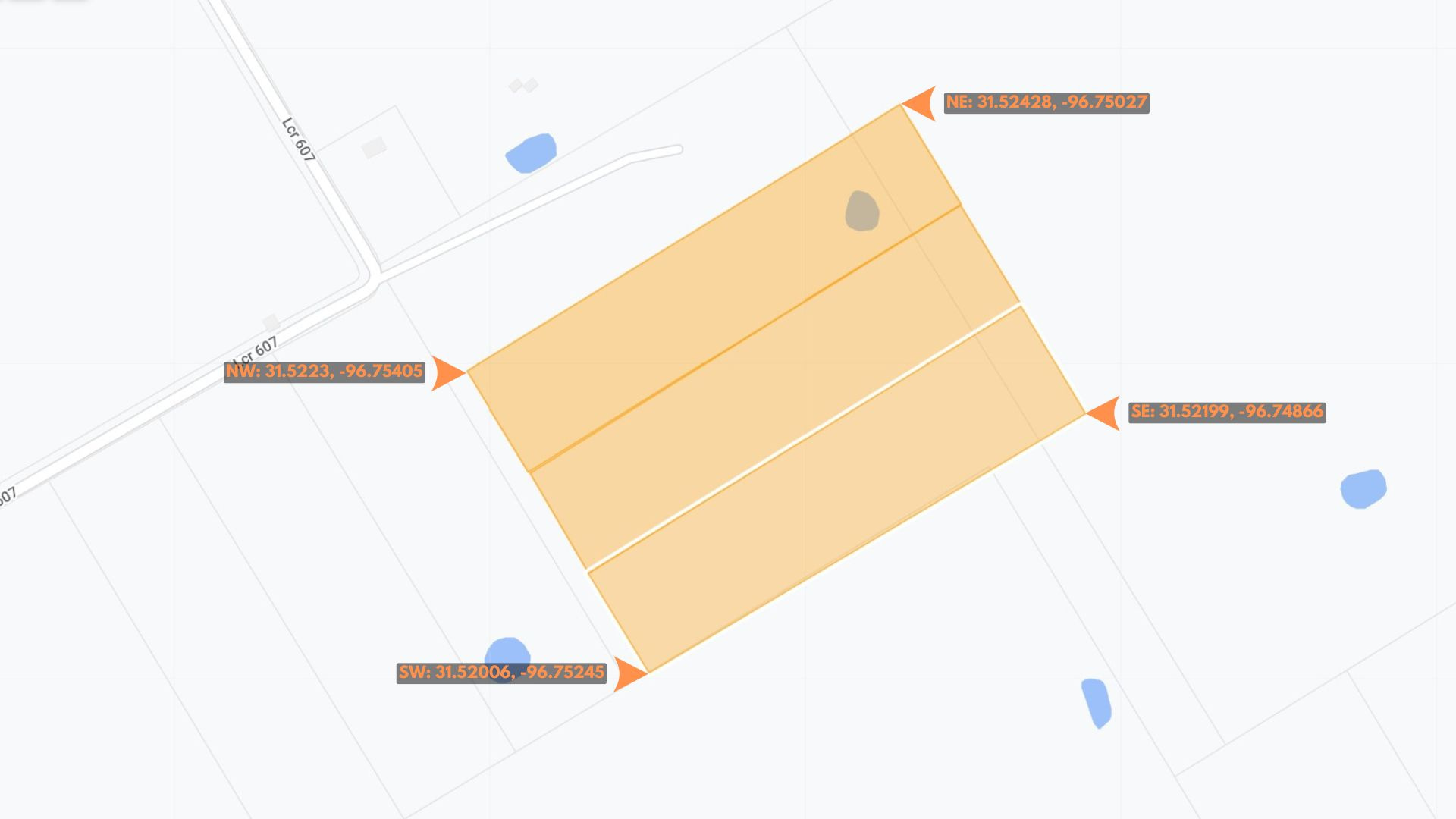Southwest Corner: 31.52006, -96.75245
