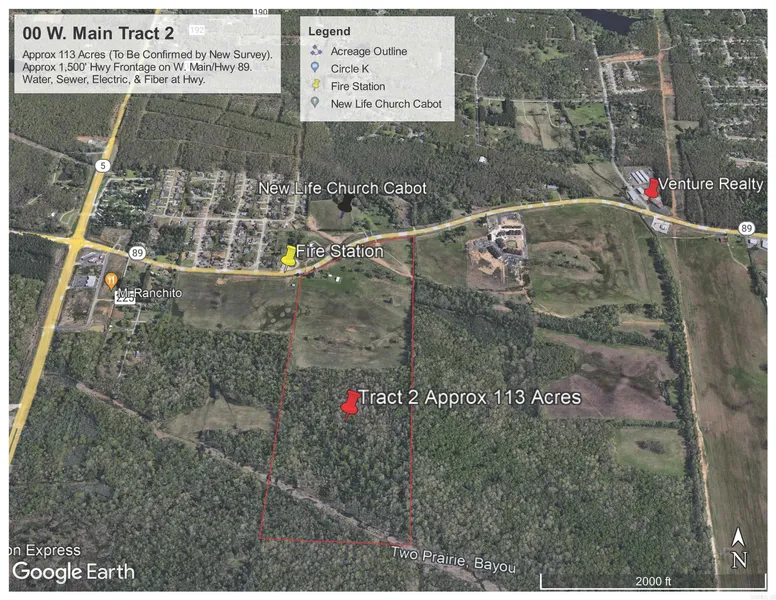 PRIME LOCATION, ONCE IN A LIFETIME OFFERING... Approx 113 Acres of a level w/ mild gentle backslope land with 3/4 Cleared Hayfield and 1/4 Trees. This property boasts approx 1,500' of Hwy 89 / W. Main Highway Frontage! Water, Electric, Sewer, and Fiber at the road. Increasing traffic via this main road artery designated as a High Traffic Location with over 11,000 per day on Hwy 89/W. Main and over 14,000 per day on Hwy 5 per AHTD. Situated ideally on the primary route between Hwy 5 and 67/167 in Cabot, AR. Located nearby: Cabot Fire Department across the road plus large neighborhoods such as Oak Brook, Magness Creek, Greystone, & More... The Pointe Apartments, Northport, ATWoods, Wal-Mart, First Security Bank, Centennial Bank, and more less than 5-min away. Professional Photos and Drone Footage coming soon. See Agent Remarks.