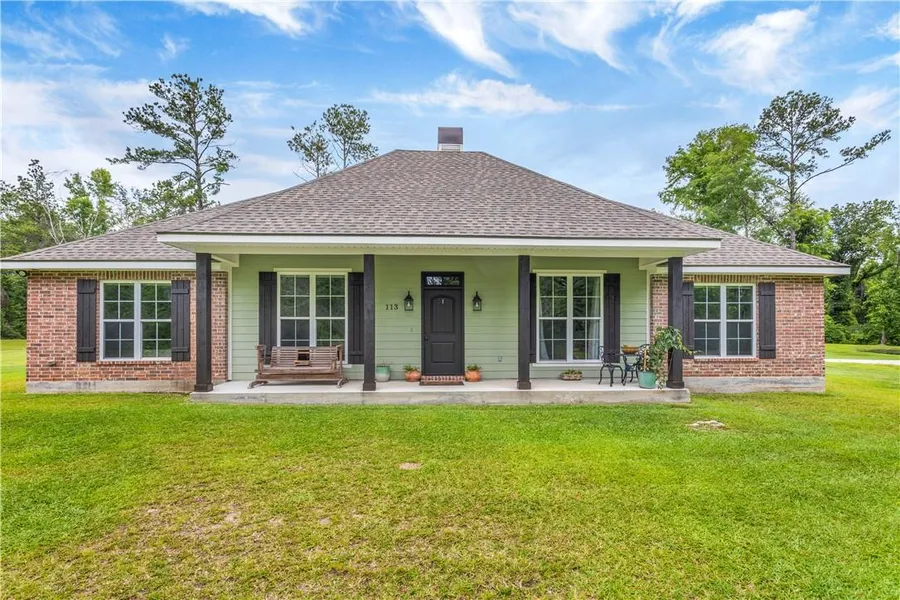 Secluded 5 year old home on 8 acres in South Beauregard School District. This 4 bedroom, 2 bath home has a split floor plan. The spacious kitchen has a large island, corner pantry, stainless appliances, stainless farmhouse sink, granite counters and adjoining dining room. The living room has engineered wood floors and a wood burning fireplace. Great planning is shown with the HDMI/cable drops in two locations of the living room, reinforced areas where TV mounts could be hung and drops for surround sound. The master suite is another great space with no carpet. The master bathroom has double vanity, separate closets, walk in shower and soaking tub. The spare bedrooms also have no carpet, good sized closets, and lots of natural light. Outside the 700+ square foot carport offers lots of room for entertaining or parking. Enjoy a day by the pond or walk the rest of your 8 acre property. The home is in flood zone x while the back portion of the property is in the flood zone. Flood insurance is approximately $690 a year.