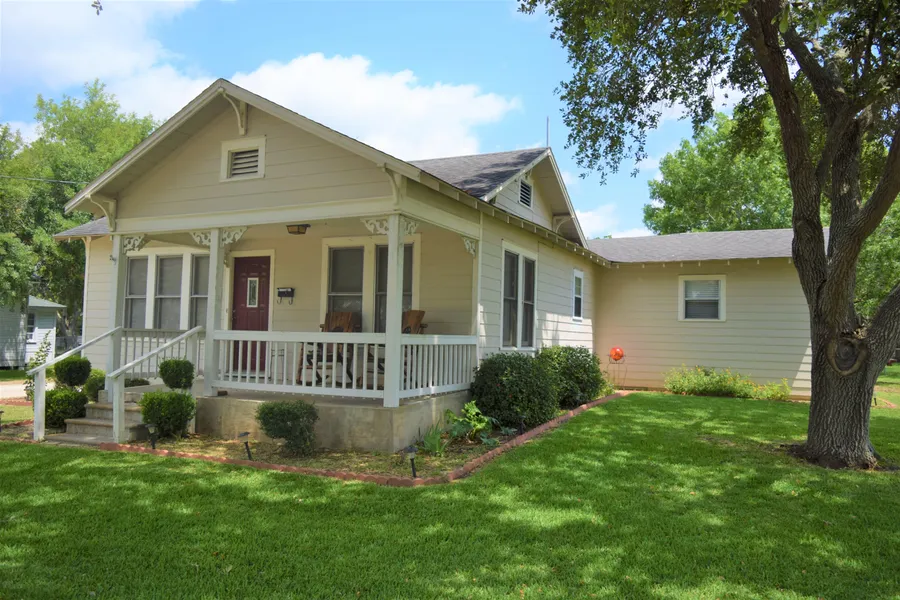 Great location on edge of town! Quiet dead-end street with no thru traffic. Perfect size home for couple. Separate 350+ SF guest quarters in back with kitchenette. Large covered concrete front porch. Extra wide driveway with covered concrete patio in back and an open wood deck along with two large storage closets for extra storage. Hardi-Plank exterior, central HVAC, built-in shelving and cabinets in den, French doors lead into dining room w/built-in china cabinet. Kitchen has plenty of counter space and a breakfast bar. Two good size full baths in main home. Yard has nice shade trees and the vacant corner lot next door is available! Please contact Bubela listing agent, Keith Koenig, at 512-423-0348 to schedule a showing of this home. Please allow 24 hr notice as this home is occupied.