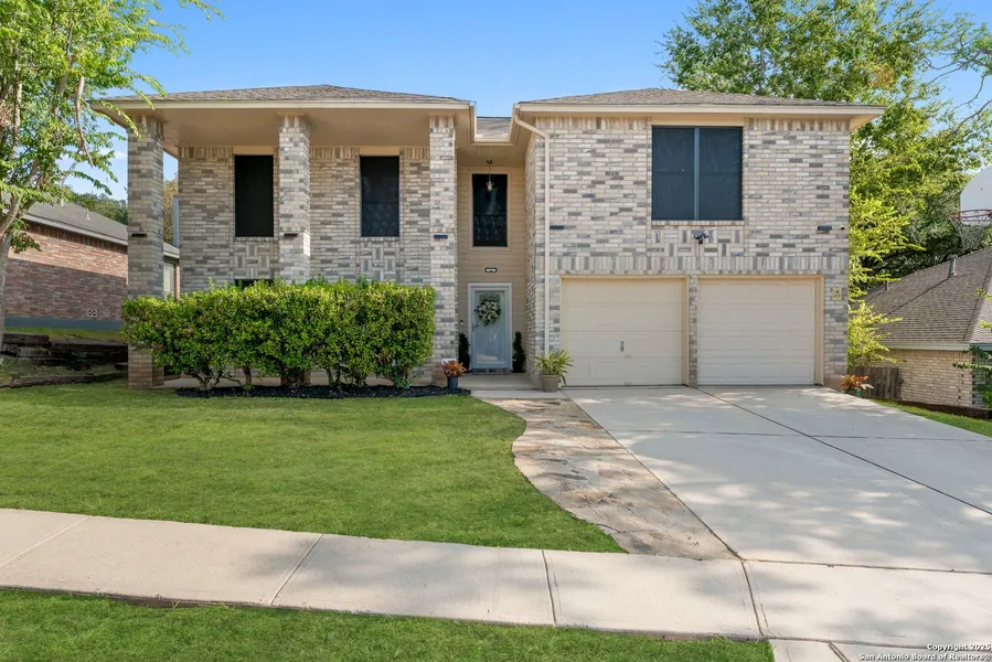Welcome to this beautifully maintained 4-bedroom, 2.5-bath home nestled in the desirable Woodcrest community of Live Oak. Step inside to find high ceilings, tile flooring, and a stunning brick fireplace that creates a warm, inviting atmosphere. The open-concept kitchen features granite countertops, abundant cabinetry, and a spacious dining area perfect for gatherings. The primary suite downstairs offers dual walk-in closets and a spa-like bath with a soaking tub and separate shower. Upstairs includes generous secondary bedrooms and a full bath. Enjoy outdoor living year-round with a covered patio and pool. Conveniently located near shopping, dining, and major highways - this home truly has it all!