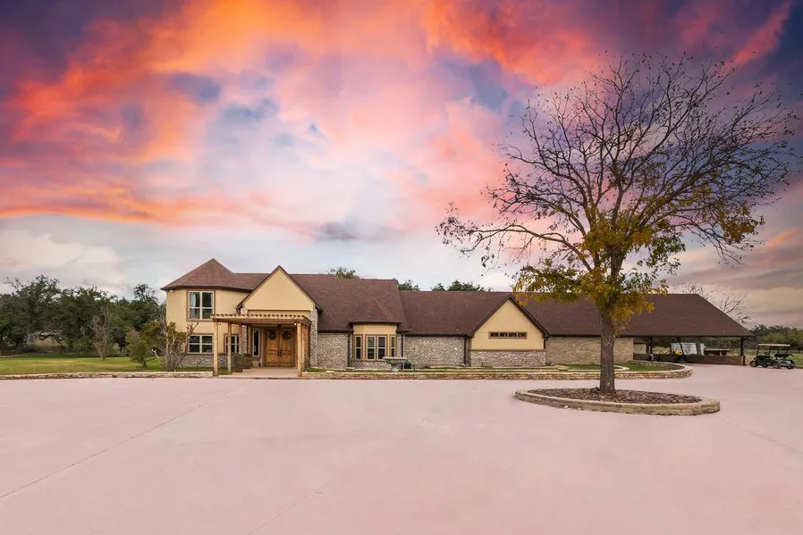 This stunning, custom design home sits on 14.2 beautifully manicured acres just outside Hamilton, TX! The private gated entry accesses off of Highway 36 E and the chip sealed driveway leads you all the way to the house. Along the drive, you are welcomed by mature hardwood trees, as well as a nice tank on the right side. The driveway up closer to the house as well as the circle drive and parking area have all been concreted recently.