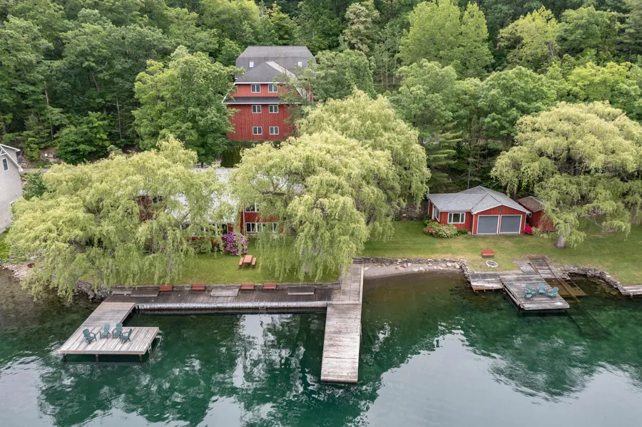 Awe-inspiring lake front estate. Spacious Contemporary , with 8000 plus sqft 4 level garage, Boat house with guest bungalow on 80 acres! Enjoy the 338 of level picturesque waterfront with two docks, a water skiing dock, sail boat ramp and tons of space for entertaining. The two bay boat house is great for storing watercraft. Beautiful sunsets looking from the East , while taking in the views up and down the lake from the Bluff to Hammondsport. 76.6 acres of wooded acreage across Rte 54 to Grove Springs Rd is great for more recreational activities and hunting. Enjoy this gem year round and years to come. Designed to be a multi-generational family compound with finished space on multiple levels in the garage for family events , and future living space. The garage is connected to the house via a tunnel and four stop elevator for convenience and handicap accessibility. No Showings until 6/4. Please do not enter the property without contacting the listing agent. (Listing includes adjacent parcel MLS# R1338752)