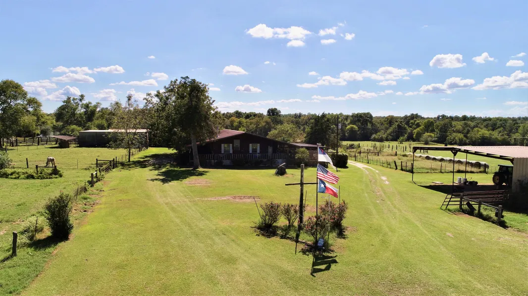 This two bedroom, two and one-half home sits on 155 acres in the Groveton ISD. The metal home has wraparound porches that say, welcome! As you enter the front door, you'll be impressed with all the woodwork, cedar finishes, and open concept. The large living area has a wood-burning stove and opens to the kitchen with great cabinet space. The laundry area has great storage space. There is a large office/activity room that could be used as a third bedroom. The master bedroom is large with its own private bath. There is a generator, so you'll never be without power! This home has a water well making gardening a must! This owner's have raise beds for gardening, 5 peach trees, 2 pear trees, and 3 mature producing pecan trees - living off the land could be easily done with this property! Outdoors, there is a 2-car carport with storage, large hay barn, and horse barn. This property is half open and half wooded with three ponds and an all-weather creek. This property has the best of both worlds great cattle/horse ranch with hay production and excellent hunting! If you're looking for a great ranch property, this is it! Call us today for more details.