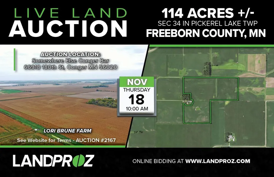 For additional information please contact LandProz Broker/Auctioneer Greg Jensen 507-383-1067.