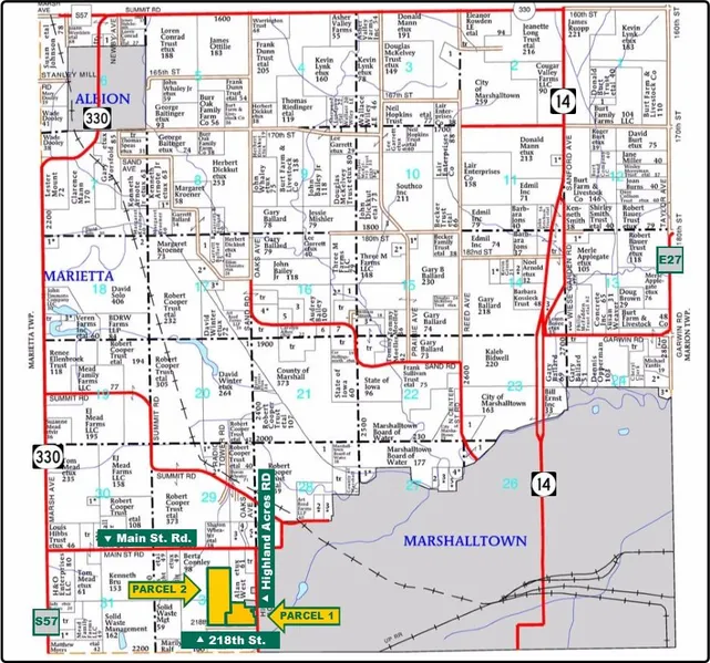 114 acres, m/l, located on the western edge of Marshalltown, IA on the NW corner of the Highland Acres Rd./218th St. intersection.