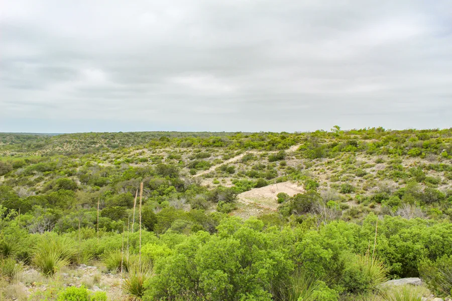 The land offers a scenic countryside of higher plateau terrain with scattered oaks, cleared paths, and accessible trails across most of the acreage. The ranch is low fenced on the western side, adjoining a large neighboring property, and is bordered by large ranches enhancing privacy and promoting healthy wildlife movement.