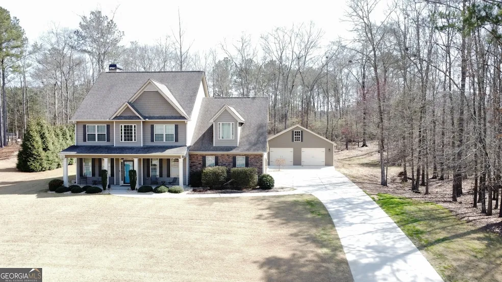 114 Austin Storey Circle in Welcome Area of Newnan -- Rocking Chair Front Porch -- Hardi Siding + Stone Accents -- 1.6 Ac Lot -- 2 Car Side-Entry Garage +++ INCREDIBLE Detached Garage / Workshop 32' x 48', 9ft Ceilings, Insulated, Separate 200-amp Service, 20-amp Breakers for Wall Outlets, (4) 220v Outlets, 8' x 10' Garage Doors, & Attic Storage -- 4 Bed / 2.5 Bath (ALL Bedrooms Upstairs) -- 3000+ Finished Sq Ft -- Custom Finishes Throughout Include Hardwood Floors on Entire Main Level -- Coffered Ceilings in Formal Dining Room -- Private Office with Built-In Cabinets -- Kitchen Enjoys Granite Counters, Tile Backsplash, Stainless Appliances, Pantry, and Breakfast Room -- Primary Suite Features Granite Counters, Tile Floors, Large Walk-in Closet -- Large, Flat Backyard With Covered Patio -- Neighborhood Amenities Include Clubhouse and Pool -- Call Your Agent to Book a Showing or Call Us to See it Today!