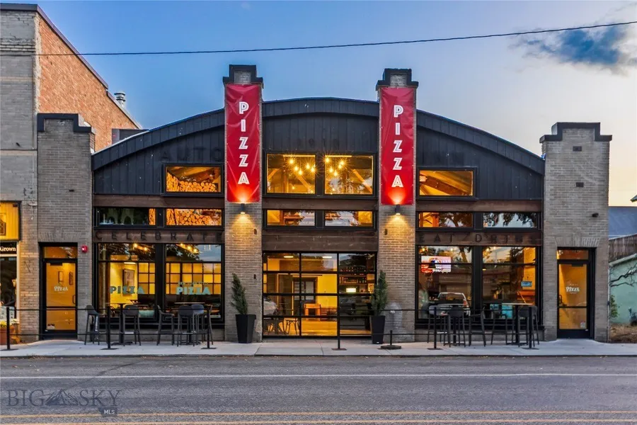 Business & Building For Sale - Auto Inn Pizza on Main Street in Manhattan. Seize this rare opportunity to own both a thriving business and a historic building in the heart of quaint Manhattan, Montana. Built in 1915 and designed by famed Bozeman architect Fred Wilson, this high-visibility property is a local landmark. Its wall of street-level windows and steady walk-in traffic make it a popular year- round restaurant, open 7 days a week! Recently updated, including new air conditioning, this property features 5,000 square feet on the main floor plus a 600-square-foot mezzanine ideal for private seating. Modern glass overhead garage doors open to the sidewalk, creating inviting outdoor seating during the warmer months. As you enter the building, you step into the bar area, perfectly designed for serving craft beer, cocktails, or coffee. Upstairs, the 600 SF mezzanine provides a quiet seating area with views through the large windows, while the lower level features an expansive show room that highlights the original wooden trusses and white brick walls, creating a tasteful modern industrial feel. ADA bathrooms with a separate office and its own private 3/4 bathroom. The business comes turn-key with a fully equipped brick oven pizza kitchen and a full beverage liquor license. The commercial kitchen includes a prep area, walk-in cooler, and additional space for storage. A complete list of equipment is available upon request. This property offers a unique blend of historic character and modern functionality, making it ready for you to continue the successful pizza business or adapt it to your own vision. Call your favorite realtor for a tour today!