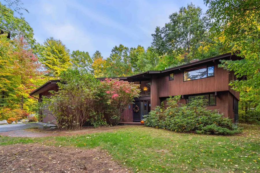 Situated on 2.14 acres this Deck House homes features soaring ceilings that create a feeling of expansiveness. The post and beam construction provides a contemporary open floor plan with exposed beams, vaulted cedar ceilings and mahogany throughout. The living room has floor to ceiling windows, tile flooring, sliding glass doors, that maximize the amount of natural daylight throughout the house. The 2 story brick fireplace allow for a wood burning fire or you can use the propane stove. The kitchen has plenty of counter space and a large window that overlooks the private, wooded backyard. Cozy den leads to screened porch perfect for meals or relaxing. Mudroom room/laundry room with desk area complete the first floor. The second floor has 3 bedrooms, the primary bedroom has two closets, a built in queen sized bed and bookcase, sitting area, and a full bath. The other 2 bedrooms share a full bath. Close proximity to shopping on 101A, as well as the center of Hollis. Roof replaced 2019, hot water tank 2022.