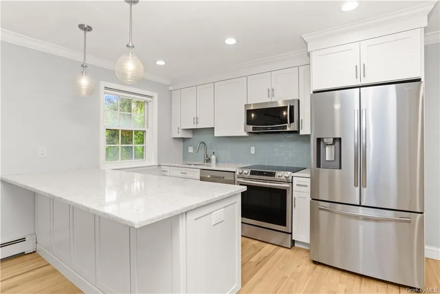 Picture perfect Bedford Terrace condo... just moments away from shopping in Bedford Hills, Mount Kisco, and Katonah. This impeccably renovated one-bedroom, one-bath home is conveniently located on the second floor with one level layout and all-new hardwood floors. The entrance offers double closets and leads you to the newly renovated kitchen with breakfast bar, spacious living room with built-in shelving, and sliding glass doors to the private terrace. The bedroom includes two large double closets and built-in shelving. Just outside the renovated bathroom are two more closets for storage. Drive out of your parking lot right onto the Saw Mill. Just a 3-minute drive to Bedford Hills Train. An assigned parking spot, visitor parking, a laundry room, private storage on the lower level, and two air conditioning units make this home a perfect place to enjoy!