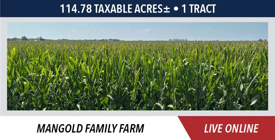 The Mangold farm will be sold on a price per acre basis, based on surveyed acres.