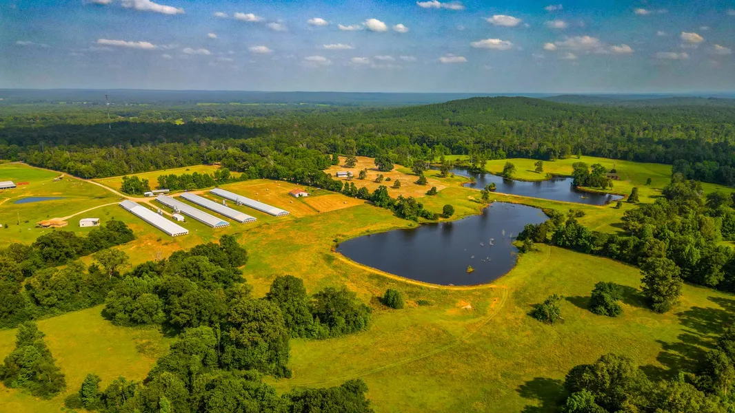 Summary: Martin Pullet Farm is a turn-key poultry operation that is under a new contract with Pilgrim's Pride to produce pullets. The contract has the potential for a performance/management bonus. The farm includes four poultry barns that are approximately 18,000 SF each and reportedly have capacity to house up to 13,000 birds per house. The farm has had many upgrades that would likely require minimal work for a new owner coming into the operation. The property also features a three bedroom, two bath house for the owner or manager of the farm, a large all-steel shop building, small apartment for a ranch hand and multiple barns and ag related structures. It is set-up for cattle grazing or hay production and appears to have adequate perimeter and cross fencing as well as a set of cattle pens. Two large lakes are centrally located on the property and are reportedly well stocked. The lakes are estimated to be approximately five and seven acres and have good aesthetics and recreational appeal. The land itself has rolling topography that is mostly pasture with scattered pockets of mature, mixed timber that offers good edge and recreational appeal. This farm has the total package that would allow a new owner to enjoy the income streams related to poultry, hay and cattle while enjoying the lakes and natural beauty of the property itself.
