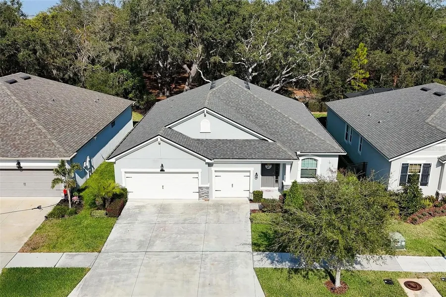 A PRIVATE, TREE-SHADED, STEP-DOWN PARK AS PART OF YOUR FENCED BACK YARD gives this beautiful home something extra! Near the end of its non-through street, with a woodsy conservation view instead of a rear neighbor, this special spot is currently a young family's playground but could be used for pet recreation, adult entertaining, or even an extensive garden. It's beyond the existing landscaped lawn of its nearly new home in Boyette Park, a security-gated neighborhood with a central pool / playground / clubhouse near Riverview High School. The 2,200-SF St. Augustine II by Mattamy Homes features open living, dining, and kitchen spaces plus a French-doored front office, 3 bedrooms, 2 baths, a 3-car garage, and a screened back lanai facing north so you're spared direct rays of both sunrise and sunset. Stacked-stone accents enhance the exterior front, while interior finishes include wood, stone, tile, stainless-steel, luxury vinyl plank and more. All bedrooms have walk-in closets, with 2 in the coffered-ceiling owner's suite, and the home's additional "entry room" from the garage provides built-in shelves for convenience. Boyette Park adds convenience because of its location close to many good schools, shops, restaurants, health care and day care options, etc. Here's your chance to be only the second owner of this quality home!