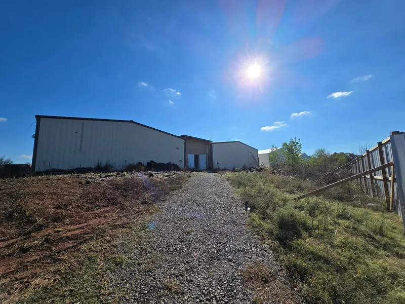 Built in 2021, four 4,800 sq ft metal warehouses have been divided into four separate units each, with roofed connections between each pair, plus two enclosed 1,440 sq ft spaces for added flexibility. There are also two 1,000 sq ft mobile homes that have been repurposed as open storage buildings without rooms or bathrooms, a large container for extra storage, and a scenic 2-acre pond.