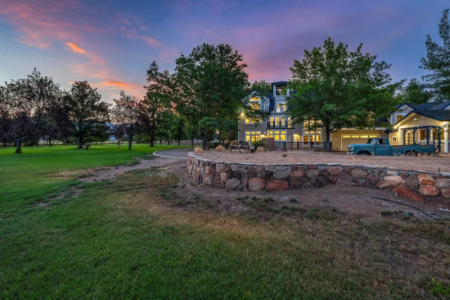 The property features 5 acres of irrigated pasture, 3 acres of lawns, nearly 100 mature trees, private well, irrigation rights, and a backup generator. Additional improvements include a detached garage/shop, raised garden beds, and ample trailer parking. All upgrades were completed with Douglas County permits.