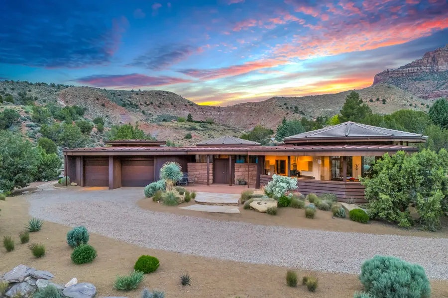 Superior Views, Superior Craftsmanship, Superior Materials, Superior HVAC system in this one-of-a-kind contemporary metal, stone and glass home is a masterpiece in design, detail and function. Perched on a knob commanding the best views of Zion, it overlooks Springdale's green Virgin River valley with the red rock cliffs towering on the both sides and extending up into Zion National Park! Brilliantly designed to capture the iconic views from every angle and every room, this home is nothing short of creative genius. White maple hardwood floors, Hemlock tongue and groove ceilings throughout, aged metal siding and trim and exquisite natural stone adorn the open interiors that feature the unsurpassed views. Built with Insulated Concrete Forms, the 13'' exterior walls provide a quiet sanctuary and exceptional insulation . Geo-thermal heating and cooling provide efficiency and comfort. This home is a paragon of timeless elegance.