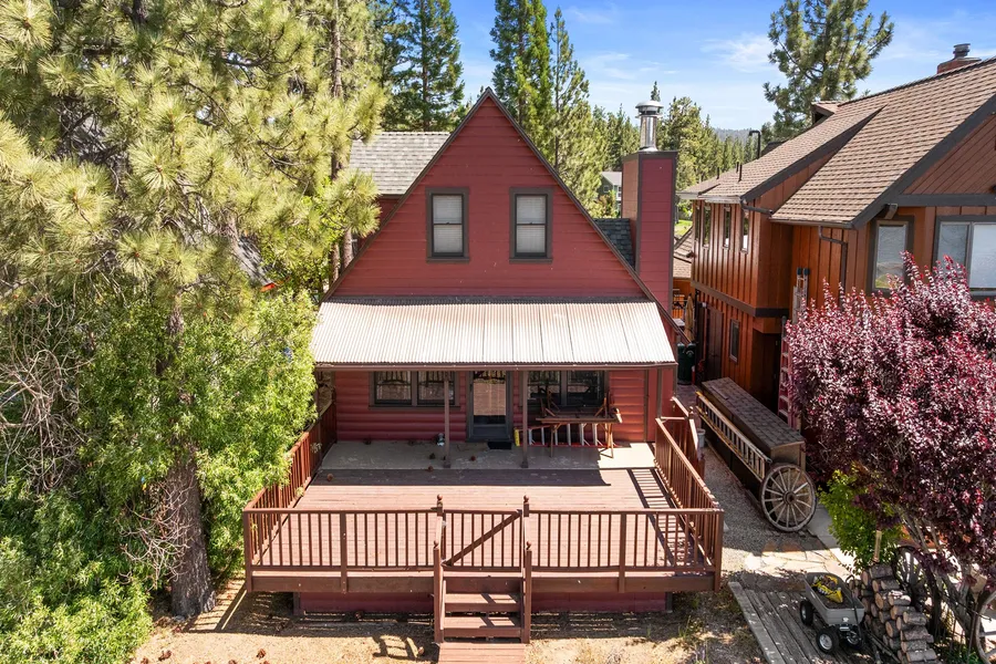 With this deep-water, centrally located, 4-bedroom, 2-bath, log-sided vintage lakefront retreat. Timeless character and spectacular lake views come together for the ultimate getaway and with a little TLC, a great vacation rental or family home. Nestled on a private drive off a quiet cul-de-sac, this property offers year-round access to Big Bear Lake, perfect for boating, fishing, swimming, paddling, or simply soaking up the tranquil views. Step inside and be transported by the original finishes that give this home its warm, nostalgic appeal. From ornately decorated ceiling beams to rustic wood details, every corner whispers timeless charm and invites you to slow down and savor lakefront living. The cozy family room opens to a large deck overlooking the water—ideal for entertaining, sunset dinners, or your morning coffee with a breeze off the lake. Whether you’re hosting friends or seeking a peaceful escape, this home offers a setting to make every moment memorable.