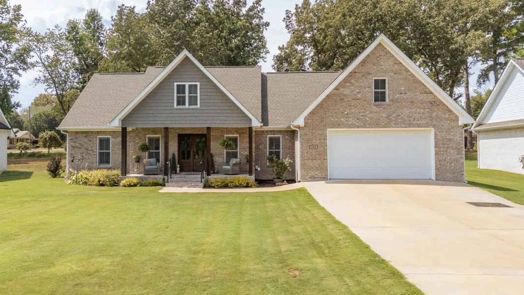 Stunning home in River Birch! This property combines the best of both worlds, peaceful surroundings yet just minutes from shopping, & features city utilities. Inside, you'll find an open-concept floor plan designed for both comfort & style. The custom kitchen boasts ceiling-height/soft-close cabinetry, granite countertops, gas cooking, & a spacious island perfect for gathering. Hardwood & tile flooring flow throughout, complemented by crown molding, 9-ft. ceilings, & timeless plantation shutters! A split-bedroom layout ensures privacy, while the oversized laundry room adds everyday ease. Outdoors, no detail has been overlooked! The oversized covered patio is truly an extension of the home, complete w/a custom grilling station & ample room for dining/relaxing. Surrounded by lush landscaping & a sprinkler system, this backyard was thoughtfully designed for year-round enjoyment. The inviting front porch adds classic curb appeal & a matching 12x16 brick outbuilding offers extra storage!