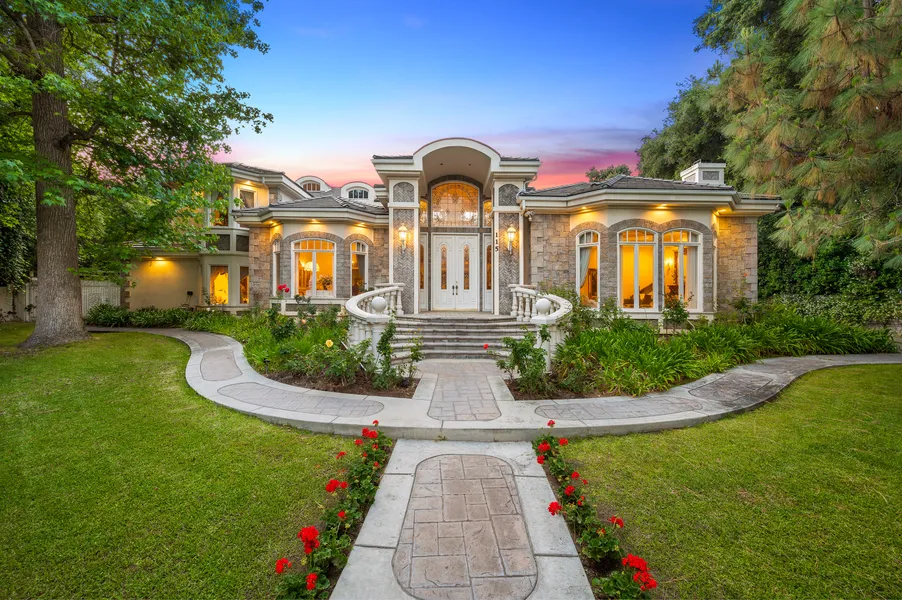 Presenting a resort-like mediterranean mansion in the most exclusive and prestigious part of North Arcadia on over 23000 sq.ft. of land. This all-encompassing setting provides a complete sanctuary in the Santa Anita Oak yet just minutes to the heart of Arcadia. An Artist 's paradise, the estate includes numerous private spaces affording a perfect flow for any indoor/outdoor lifestyle. An opulent foyer welcomes you in the home through a double-door entrance where you are greeted with a grand staircase and a timeless chandelier. This elegant classic estate features a spacious formal living room adorned with architectural windows and high ceilings, grand fireplace, chef's kitchen features a large center island, butler's pantry & breakfast nook. The dining room showcases a stunning ceiling and custom period detailing. Completing the first floor is the elegant, wood paneled office which accents the design & detail of this remarkable home. Upstairs there are four generous en-suite bedrooms, with the primary suite highlighting a terrace with overlooks the pool. Fabulous outdoor spaces include swimming pool and afternoon tea area. This timeless design is thoughtfully executed throughout the property.