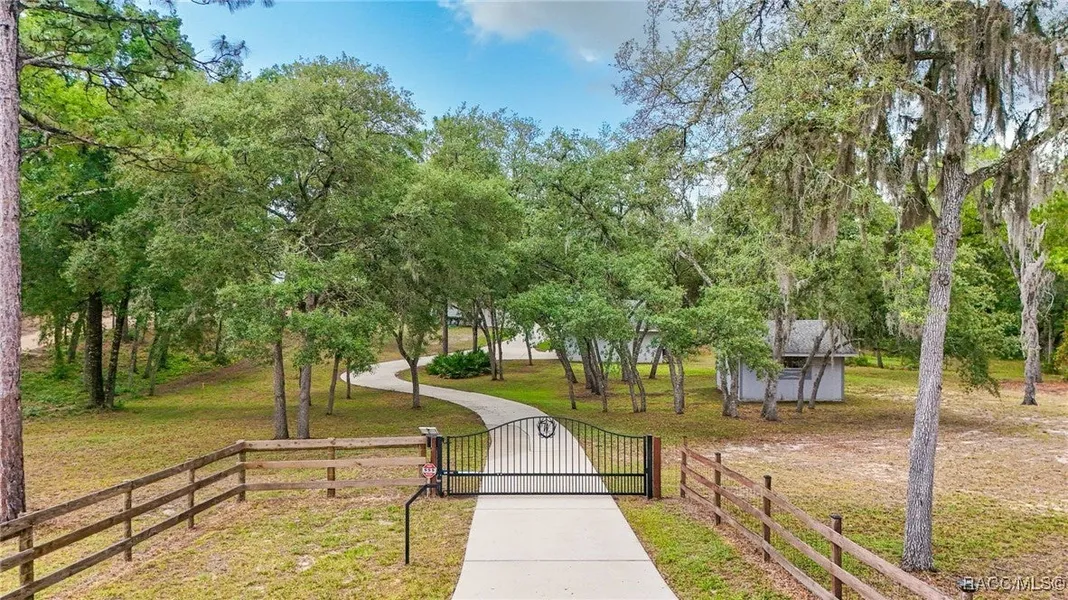 This breathtaking property offers 1.92 acres of peaceful, wooded beauty. As you arrive, you’ll travel through an impressive gate, setting the tone for the elegance and privacy this estate provides. Step inside through a grand front entrance flanked by elegant glass block side panels. The spacious living room with skylight offers an expansive view leading to a stunning full-size swimming pool and an above-ground 5-seat jacuzzi—perfect for relaxation and entertaining. The master bedroom suite, featuring a cozy gas fireplace. Two large walk-in closets, master bath boasts a beautiful garden tub, dual sinks, heat lamp, and glass block windows. The galley-style kitchen with skylight is beautifully equipped for modern convenience, recently upgraded with a brand-new Gallery 24-inch single electric wall oven featuring air-fry convection and self-steam cleaning. With plenty of cupboard and counter space, this kitchen is both stylish and functional. A convenient half bath is located just off the kitchen. A spacious laundry room features a built-in sink and ample storage space, making chores a breeze. This room seamlessly leads into a 2 + 1 garage, providing extra flexibility. The dedicated office space is ready for immediate use, offering plenty of counter space for multiple computers, printers, and work essentials. The generous in-law suite offering a spacious layout with a full bath, a garden tub, and a tiled shower. The third bedroom is another standout feature, offering sliding glass panels that open up to breathtaking views of the 14 X 28 full-size swimming pool and wooded backyard. An additional concrete block building, measuring 26 x 26 feet, offers endless possibilities. This versatile space features a 13 x 12 office area with half bath and 7 x 7 storage section, making it an excellent choice for a creative professional. A spacious tool barn, measuring 16.5 x 16.5 feet, provides plenty of room to store your gardening tools.