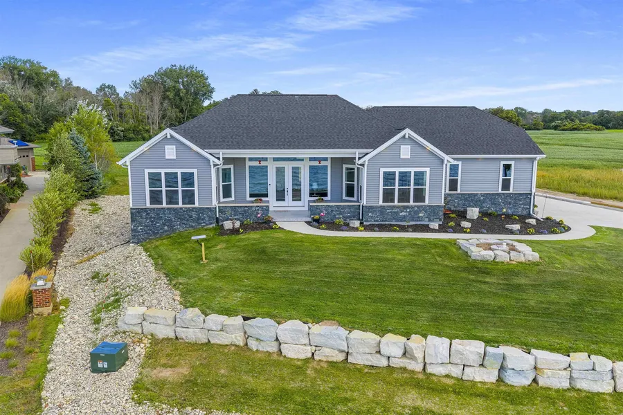 WATERFRONT with dock - Beautifully built in Oct. 2024, this 4 bedroom, 2 bath ranch home on 1.2 acres offers a spacious open-concept layout with LVP flooring, built-in electric fireplace and 1st floor laundry. The kitchen and bathrooms feature quartz countertops. The main bedroom boasts a tray ceiling, walk-in closet, and ensuite bath with dual sinks, a separate tub, and a tile shower. The lower level with 2 bedrooms and full bath. Enjoy 160 feet of bay frontage with a rock beach and dock, plus a new 10x23 deck. All landscaping has been completed. Garage is insulated, prepped for heating, and features an epoxy floor and LED lighting.
