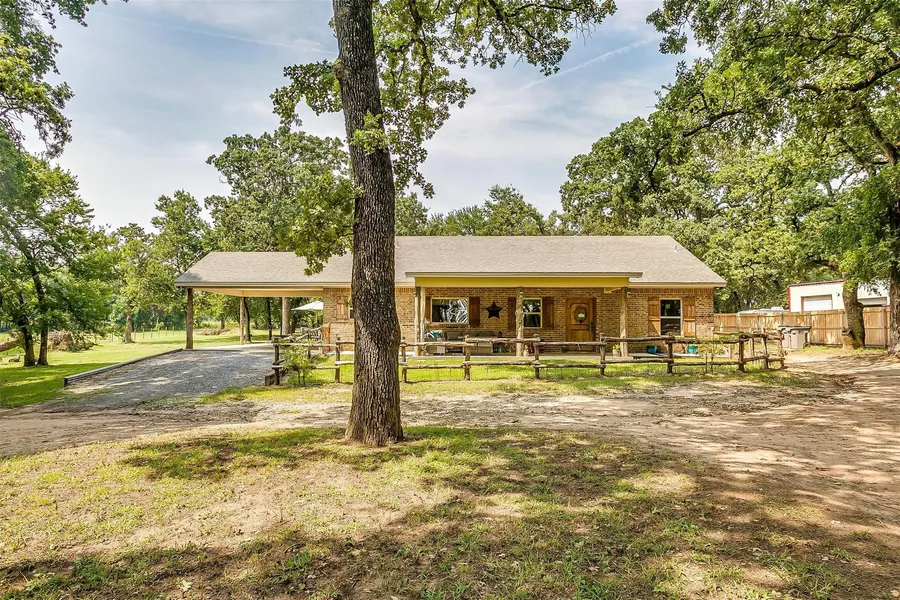 Beautiful 1667-foot custom-built home is sheltered by well-developed trees, providing a charming surrounding. Scenic windows allow one to view the outdoors while staying cool during the Texas heat. No details were missed in the construction of this home including spray foam insulation. This home is extremely spacious with 9-foot vaulted ceilings & an open concept. The crown molding and custom hardwood cabinets give this traditional house a classy finish. The big front porch is great to enjoy your morning coffee. Once outside, you can enjoy the she shed & cabin that both include electricity & AC. These 4 breathtaking acres are restriction-free, giving you the freedom to completely enjoy your piece of Texas.