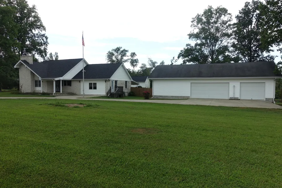 Perfect country retreat located 7 miles south of Seymour on two acres! This stone and vinyl home offers 1800 SF of living space, complemented by a detached garage measuring 1300 SF. The living room boasts a massive floor-to-ceiling brick gas log fireplace with a vaulted ceiling. With three bedrooms, one full bath and two half baths, this home provides ample space for your family's needs. The detached garage has a concrete floor, blown insulation in the walls and ceiling and offers a built-in office space. There is a covered front and rear porch, and the large concrete driveway provides plenty of parking space. A privacy fence surrounds the rear yard, and a large shed with electric hook up provides even more storage options.