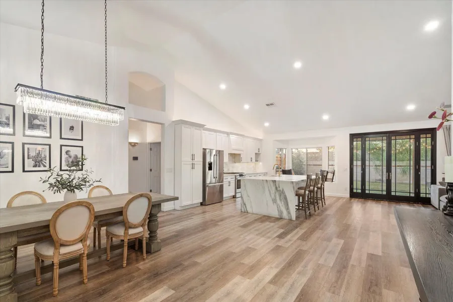 Stunning remodel in Garden Lakes! This beautifully renovated split floor plan home is magazine worthy and ready for its new owner! Step into this reimagined, open concept home complete with a state of the art kitchen featuring a 10x5 waterfall honed marble center island, marble backsplash, custom cabinetry, farmhouse sink and gleaming stainless gas range and appliances. The home boasts three bedrooms and two renovated spa-like bathrooms. Step outside and enjoy the large covered patio with unobstructed views off the back and spacious N/S backyard perfect for entertaining. Enjoy the owned solar panels for reduced utility bills and the extensive landscaping, including citrus trees and smart drip lines. The neighborhood is known for its boating, fishing, parks and trails. A perfect 10!