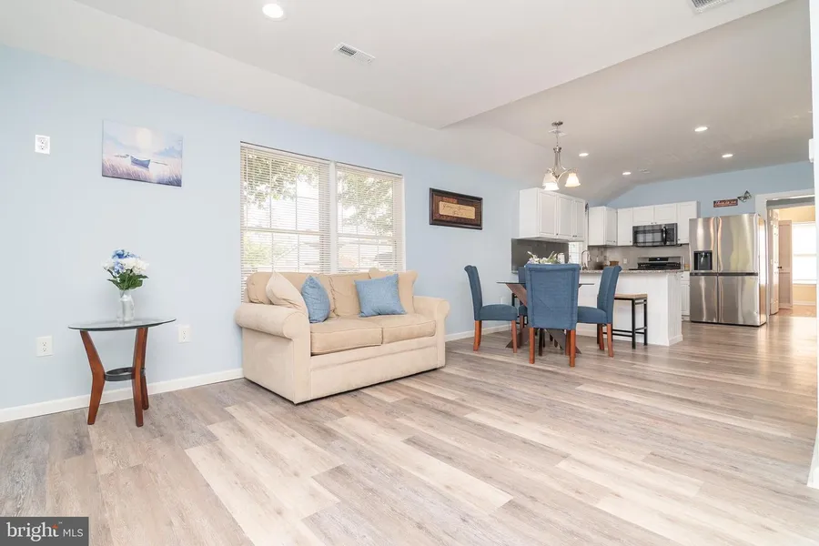 **The Moment You've Been Waiting For** Venture into this beautifully renovated three-bedroom, two-bath rancher offering approximately 1,117 square feet of inviting living space. From the cozy, carpeted front porch-perfect for morning coffee or evening relaxation-you'll enter an open-concept living, dining, and kitchen area adorned with luxury vinyl plank flooring and bathed in natural light. The kitchen features stainless steel appliances, generous counter space, and a seamless flow into the dining and living areas, ideal for entertaining or quiet evenings at home. Two carpeted bedrooms with ample closet space share a stylish full bath with tile backsplash and a shower/tub combination. The primary suite is a true retreat, showcasing hardwood floors, a stunning exposed wood accent wall, and a modern ensuite with a tile walk-in shower and sleek hardware. Additional highlights include a stackable washer and dryer, a fenced backyard with mature trees, a fire pit, screened gazebo with seating, detached one-car garage, and extra parking for at least three vehicles. Whether you're hosting guests or enjoying peaceful solitude, this home offers the perfect blend of comfort, style, and outdoor enjoyment.