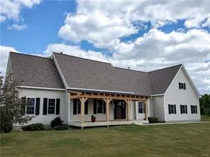 This captivating Executive Cape on 24 acres with a picturesque view of Skaneateles Lake has been updated with top of the line materials and craftsmanship. In the back, the property holds a natural spring and a creek running through the woods. A newly installed salt water pool- 8 deep, 24 x 44 ft, LED lights and in-step entry; custom made timber framed 8 x 27 ft. front porch, new Thermatru front door; redesigned 1?st ?floor master suite with a large walk in closet, state of the art bathroom includes double sink Pottery Barn vanity, no curb walk in shower, quartz bench and multiple bronze Moen fixtures; new flooring throughout; gourmet kitchen with new granite countertops, factory painted cabinetry, new fingerprint resistant stainless steel Maytag appliances, Moen pot filler and a custom built barn wood vent hood; recessed lights and new light fixtures throughout; 1st floor laundry room with new Maytag front load washer/dryer and utility sink. A 40 x 60 ft. pole barn was also added along with extensive site work. The screened in back porch overlooking the pool is one of the many other bonuses this home has to offer. Skaneateles Village and attractions are just a short drive away.