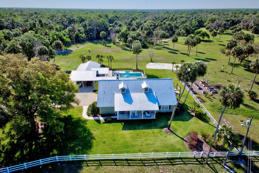 Welcome to your dream property nestled along the serene banks of the Peace River, boasting an expansive 24 acres of natural beauty and unparalleled amenities. With over a quarter-mile of river frontage, this stunning estate offers a rare opportunity to experience luxury living in a picturesque setting. The centerpiece of this remarkable property is a meticulously crafted five-bedroom, two-and-a-half-bathroom home designed to blend modern comfort with rustic charm. Stepping inside, you're greeted by a spacious living room bathed in natural light, leading seamlessly to a Florida room overlooking the inviting pool area. The large master bedroom features a walk-in closet and en-suite bathroom, providing a peaceful retreat after a day of outdoor adventures. Recently renovated, the home boasts a new stand-and-seam metal roof installed in 2023, ensuring years of worry-free living. For the avid collector or hobbyist, a helicopter hangar/man cave garage awaits, measuring an impressive 50x50 with soaring 20 ceilings. Complete with an office, AC, bathroom, and a 50 opening hangar door, this versatile space offers endless possibilities. A lighted concrete helicopter pad adds to the allure of this unique feature. Outdoor enthusiasts will delight in the array of amenities designed for both relaxation and recreation. A custom 14x44 pool beckons on hot summer days, complemented by a spacious pool room featuring a sauna and full bathroom. The adjacent covered carport provides convenient storage space, while a covered fish shack offers a dedicated area for cleaning the day's catch. Entertaining is a breeze with a full outdoor kitchen equipped with flat tops, grills, sinks, cabinets, mini-fridge, flat-screen TVs, and surround sound music system. A covered fire pit and custom shooting table provide additional options for outdoor gatherings. The property's extensive grounds are meticulously maintained and thoughtfully landscaped, with a private ranch-style entrance leading to a 1/4 mile asphalt driveway. A second private driveway, complete with electric hookups and a locked gate, offers convenient access to the riverfront. Outdoor enthusiasts will appreciate the beach sand volleyball court, two ponds, three fenced pastures, and irrigated rows of mixed fruit trees. For gardening enthusiasts, raised garden boxes and an irrigated vegetable area provide ample space to cultivate fresh produce. Additional features include a private boat ramp, almost two acres of hidden high fence for deer or exotics, and a home generator hooked up to a 250-gallon propane tank, ensuring peace of mind during inclement weather. Whether you're seeking a tranquil retreat or an outdoor enthusiast's paradise, this extraordinary Peace River property offers the perfect blend of luxury, comfort, and natural beauty. Don't miss your chance to call this exceptional estate home. Schedule your private tour today!