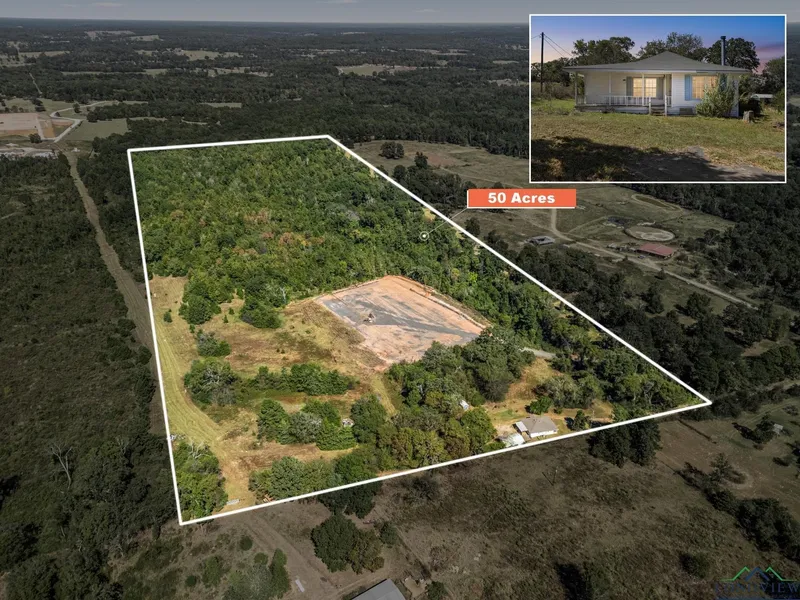 Welcome to 1159 County Road 479D, a secluded East Texas homestead on 50 Acres of land, tucked away at the end of a quiet county road. This 2 bedroom, 2 bathroom home offers 1,544 sq ft of comfortable living space with an open kitchen featuring updated cabinets, counters, and flooring, a cozy dining area, and a wood burning fireplace in the living room. The guest bedroom includes updated flooring and a walk in closet, while the spacious primary suite features dual walk in closets and a charming sunroom space perfect for morning coffee or plants. The property also includes separate guest quarters with one bedroom, one bathroom, a kitchen, and living space, connected to the main home by a wooden deck. Behind the home sit two sheds. The large white shed has power and is perfect for projects, while the green shed is ideal for storage. The land spans 50 beautiful acres with a mix of woods and open pasture, a natural creek to the north of the house, and plenty of space for animals, hunting, or simply enjoying East Texas nature. With its ag exemption in place and quiet, dead-end setting, this property is a rare opportunity to own a true slice of country living.