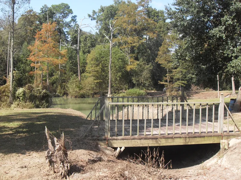 Creeks and Ponds: Little Cypress Creek and one of its tributaries are located on Big Oak Farm. These creeks are intermittent, and provide great wildlife habitat and a seasonal water source for the ponds and wildlife. The tributary on the north end of the farm has a mix of hardwood, cypress, pine and brush. On the west end of the tributary are two beautiful ponds linked by a canal with a scenic arched wooden foot bridge. The larger +-0.7 acre pond has stately cypress trees in it, and both ponds and the canal are supplemented with well water as needed.