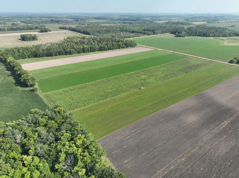 Just South of Bertha lies this 116 +/- acre income producing farm. Just 1/2 mile off tar this property is easy to access and retains 68 +/- acres of productive tillable ground, wetlands, plus a large woodlot filled with oak, aspen, maple, box elder, and grassy bedding cover. The home site includes a manufactured home, large storage shed w/concrete flooring, and a hay shed among other outbuildings. This could absolutely be the right place for both the bow and rifle hunter as there have been some good bucks harvested over the years. Buyer(s) / buyer(s) agent to verify building inquiries to Bertha Township. Boundary lines are approximate.