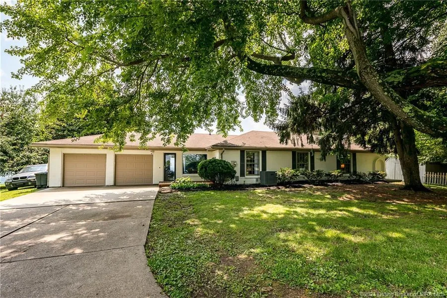 Amazing VIEW! See all of southern Indiana & Louisville sitting in your living room or this amazing yard!! This is the perfect house to entertain! The Living Room features a Cozy Fireplace and floor to ceiling panoramic windows. It has 3 bedrooms 3 bathroom and a Gourmet style Kitchen with quality built cabinets, an Island and a Breakfast Bar that also has a great view. New flooring, stained concrete, crown molding... Finished Basement with more room for Entertaining, which includes 2 additional bedrooms (no egress) and a Full Bath and an outside entrance. It also has hardwired security system & driveway alarm 2 Car attached garage. Secluded 5.337 acre Lot with Beautiful flower gardens and pear, Apple, Peach, & cherry trees. Outside areas have the most amazing sitting area and walking & hiking trails! Very private!! GREAT LOCATION! Approximately 10 min. to I265 Sq Ft and Measurements are approximate if critical buyers should verify.