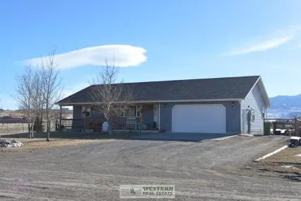Horse property on the Southfork with great views in all directions. 4 Bedrooms, 3 full baths, 2 car garage, tile floors, vaulted ceilings, covered porch and a low maintenance exterior with lake and mountain views. 1.9 irrigated acres, cross fenced, round pen, horse shelter with storage, RV plug-in, extra parking. Fully finished basement includes a large, full bath, family room and two bedrooms.