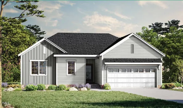 Custom-Built True Ranch by Ken Harvey Homes in Lake Royale—a private, gated resort community with boating, beaches, fishing, clubhouse, swimming pool, sports courts, playgrounds & more! Build from the ground up and personalize your finishes with a trusted local builder. This thoughtfully designed plan offers wide plank, waterproof LVP flooring throughout the main living areas. The gourmet kitchen features custom painted cabinetry with cove crown trim, quartz countertops, tile backsplash, large center island with single-bowl stainless sink & pull-out faucet, double trash pull-out, lazy Susan, recessed lighting, stainless steel appliances, and pantry storage. The open family room includes a gas fireplace and is ideal for everyday living and entertaining. The Primary Suite features crown molding, walk-in closet, and a spa-inspired bath with designer tile flooring, dual custom vanity with quartz, and a tile walk-in shower with niche and bench seating. Additional highlights include: mudroom drop zone off the garage, covered rear porch, two secondary bedrooms, and a spacious laundry room. Enjoy the Lake Royale lifestyle—golf cart rides, lake views, community events, and year-round outdoor recreation. Your custom lake community home awaits!