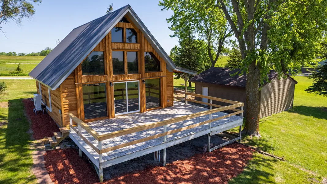 Located less than a mile from Rathbun Lake, in the former Wind-N-Waves subdivision, sits this beautiful 1,200 sqft, cedar, A-frame home. This freshly remodeled home features all new interior finishes! The flooring, cedar paneling, heating and air conditioning units, cabinets and so many more features are brand new!