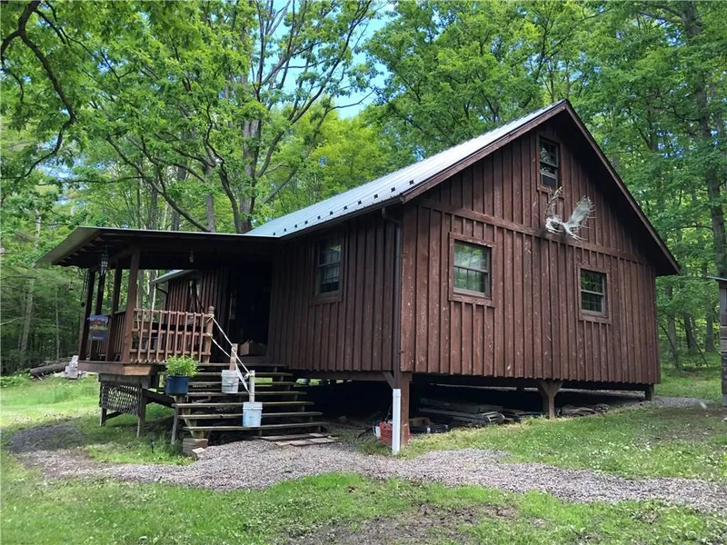Gorgeous recreational retreat with Amish built post and beam home situated on 67+-acres with a stocked pond. Catfish galore as big as sharks but friendly! This retreat has a lot to offer; all timber and mineral rights stay with new owners. Come bring your family and watch the wild life such as deer, turkey and lots of other wild birds and rabbits. Pond is spring-fed and has a dock for fishing. Additional land could be purchased. This cottage style home is nestled in the hills of the Canisteo Valley, it's a place where you feel safe riding horses or recreational vehicles. Property is off grid and is self maintained with bathroom and running water. Generator runs on gas with propane tanks for cooking. You can't smell your neighbor's bacon from here, but you sure can smell the clean air!