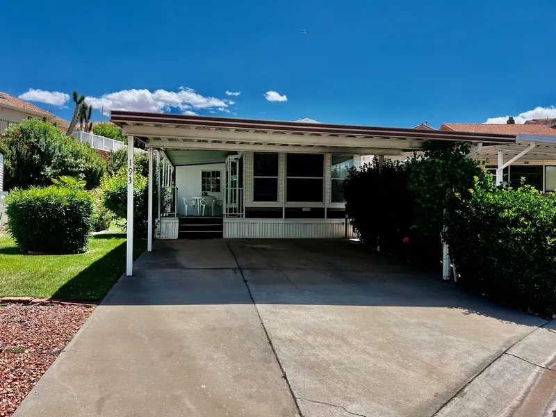 Spacious Park Model on One of the Largest Lots in the Community This furnished park model sits on a rare 0.12-acre lot surrounded by grass and natural privacy—one of the largest in the park. Inside, enjoy solid wood cabinetry, a newer HVAC system, and a cozy, move-in ready interior. The private parking area is bordered by a lush hedge, and the oversized deck offers the perfect space to relax or entertain. An extra-large shed provides plenty of storage for all your needs. A perfect full-time home or weekend escape.. ready to enjoy from day one. Buyer to verify all information.