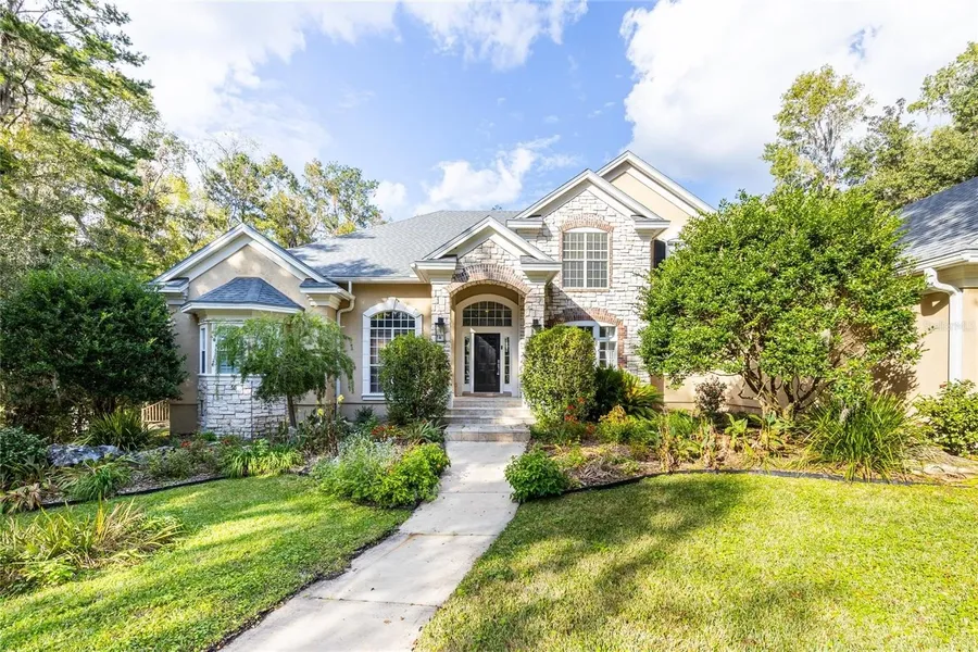 Under contract-accepting backup offers. HUGE PRICE IMPROVEMENT!! This one of a kind 4,419 sq ft home on 1 acre, in the secluded, gated community of Hampton Ridge offers luxurious features and a meticulously maintained design. Built for both comfort and style, the property includes 4 bedrooms, 4 bathrooms, a study, formal living and dining areas, a loft, and a flex room. The grand foyer welcomes you with high ceilings and tray designs, leading to stunning views of the pool and spa. The owner's suite is a private retreat with wood floors, plantation shutters, and a beautifully renovated marble bathroom featuring a glass shower, free-standing modern tub, and modern fixtures. Every bathroom in the home has been remodeled with modern finishes and fixtures. The spacious kitchen boasts an island, white cabinetry, granite countertops, stainless steel appliances, Wolfe Cooktop, a built-in oven, oversized pantry, and both a wet bar and dry bar, ideal for entertaining. The soaring ceilings in the great room add to the grandeur, while large sliding glass doors open to the pool area, perfect for indoor-outdoor living. Additional features include ample storage with plenty of walk in closets, a laundry chute from the upstairs suite, and significant updates such as a new roof (2022), a water softener system throughout (2022), resurfaced pool (2017), summer kitchen remodel (2019), a new water heater (2021), and updated AC units within the past 5-7 years. The home is situated near Tioga Town Center, Jonesville, and Haile shopping, offering convenience to nearby amenities.