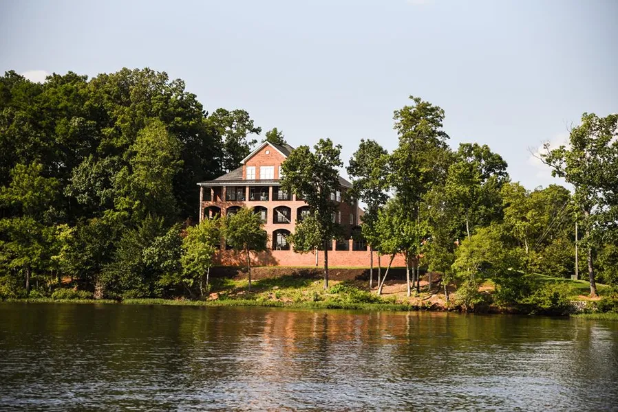 Lake Gaston Sunrise & Sunset Views from Private Point Main Lake Lot! French Country Elegance describes this 11,820 sqft home. To be expected are many high end finishes & special touches at every turn. Expansive Greatroom anchored by ceiling to floor stone FP, Culinary Kitchen. Main level Master Suite overlooks main lake, private luxurious MBA. Other levels offer a penthouse suite, full private kitchen, dining, living area & unobstructed main lake view. 2 Master suites on 2nd flr & game room; LL wine cellar, home theater, gym area. Lakeside Wet Bars on Lower, Main & 2nd Floor. Direct access to lakeside deck, lower patio & poolside. Countryside Villa feel at poolside. Double boathouse, sundeck roof & jet ski lifts. Enjoy watching local residents eagles & catfish jumping on the bank. Investment, Income Producing Property ideal for company outings or family reunions!