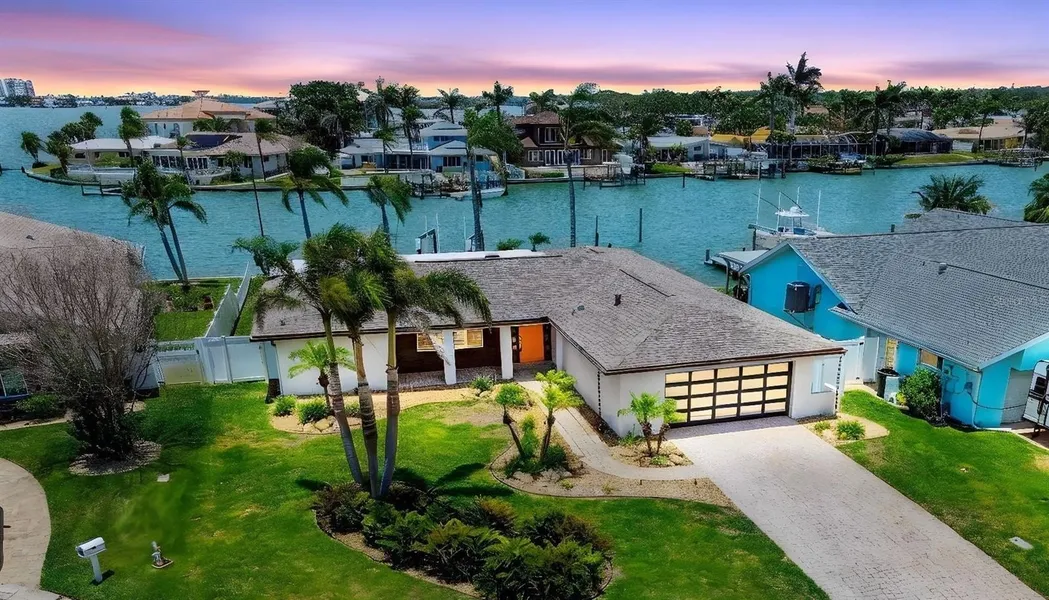 Under contract-accepting backup offers. One or more photo(s) has been virtually staged. Beautiful, Contemporary, Waterfront Home with Magnificent Open Water, Westerly Views Across Boca Ciega Bay! Enjoy sunset views from all common areas, the master suite and 2nd bedroom! This gem is located at the end of a cul-de-sac in the sought-after community of Oakhurst Shores, just north of the Madeira Beach Causeway offering both tranquility and exclusivity. The open, split bedroom floor plan creates a spacious welcoming environment. Tile floors, crown molding and plantation shutters add elegance throughout the home. The gorgeous new kitchen is a chef’s delight with quartz countertops, soft close drawers, under cabinet lighting, an LG French Door Refrigerator, Bosch Dishwasher, a Center Island with a Z-line Induction Cooktop & Convection Oven w/ Air Fryer feature & a GE Monogram Range Hood. A pass-through window links the kitchen to the large, screened lanai, making it ideal for entertaining and indoor-outdoor dining. The home's Smart Features include a Control 4 Automation System with access control, whole house audio & video, allowing music and entertainment in every room. The system also includes a 10-camera surveillance system, HVAC controls, and remote lighting controls. The Rachio 3 Smart Sprinkler Control System keeps your lawn green, using smart technology to save water and time. All the smart features are voice activated with Alexa for the ultimate convenience! With these smart systems you can easily set the mood, secure your home, and adjust your environment for daily enjoyment whether relaxing after work or hosting with friends! Step outside to a beautifully landscaped yard, comp and a new seawall built in 2023, ready for a pool if you wish to add one. The 10,000-pound boat lift, upgraded in 2019, makes launching and storing your boat effortless- ideal for boating enthusiasts. The water depth under the dock is always sufficient to take your boat out and not dependent on the tide as other homes in the neighborhood are. The 500 sq ft composite dock with catwalk, installed in 2016, is perfect for fishing, docking an additional watercraft or lounging while watching dolphins and manatee frolicking- a daily occurrence! A 30 AMP RV/Boat outlet by the driveway means you can easily charge recreational vehicles or boats. A gas tankless hot water heater and gas heat ensures comfort and efficiency year-round. The shingle roof is 2017 and the flat roof is 2025. Oakhurst Shores is a peaceful neighborhood with great schools, underground utilities, and natural gas. The voluntary HOA and no minimum lease term provide flexibility for owners, including Airbnb potential. Enjoy waterfront living with no thru traffic and easy access to the Gulf of Mexico—just 15 minutes by boat or bike to the beach. Shopping, dining, and recreation are all nearby, offering a vibrant community lifestyle! This beautiful, contemporary home is move-in ready. With its modern upgrades, smart features, and exceptional location, it offers the perfect blend of luxury and convenience. Imagine yourself living here- Schedule a showing today and make this dream home yours!