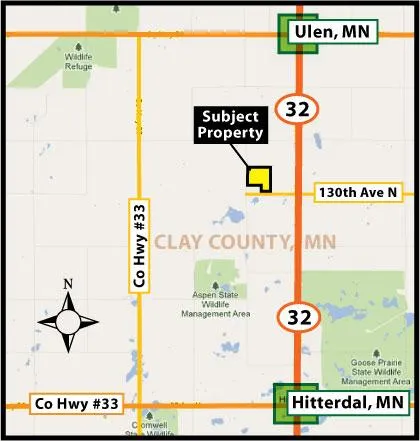 Auction Note: This property features 117 acres, including 115 acres of fantastic crop land with an excellent soil productivity index. As a Farmer or Investor, this is your chance to take advantage of this perfect opportunity to expand your operation with this great Clay County cropland. The property has great access and is located just north of Hitterdal, MN and south of Ulen, MN. Crop land is available for the 2012 crop year.