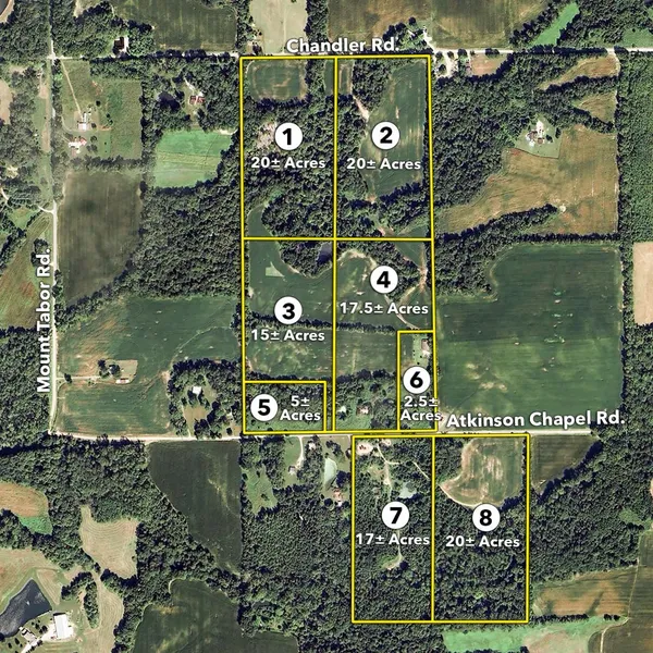 Tract 8: 20 AC; 5.36 tillable acres; frontage along Atkinson Chapel Road
